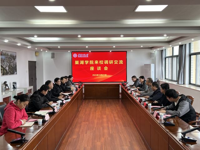 本网讯 10月21日,巢湖学院党委委员、副院长周祥一行来校调研交流,校党委常委、副校长张开炳出席,后勤保障处相关人员参加。